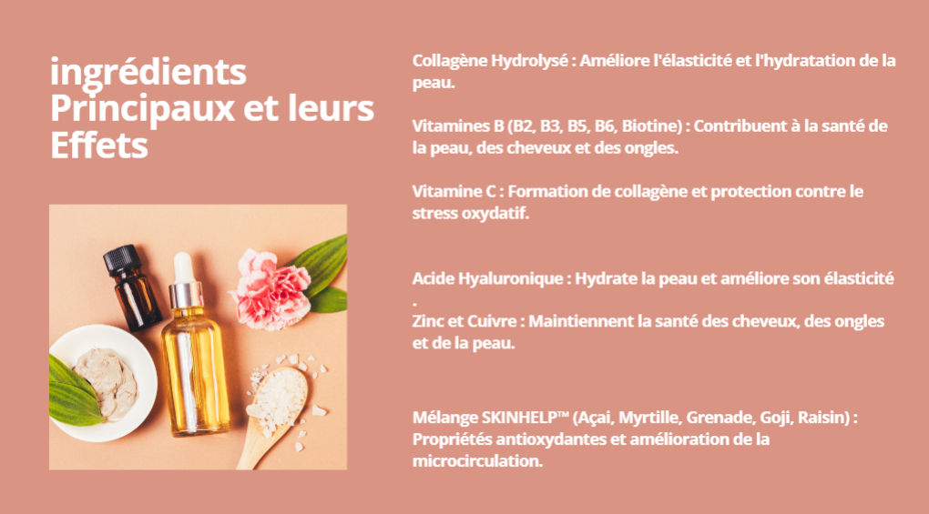 Ne laissez plus le stress ou les changements de saison affecter votre apparence. Avec SKINAIL PLUS, profitez d'une peau radieuse, de cheveux brillants et d'ongles forts. Faites confiance à notre formule innovante pour sublimer votre beauté et vous aider à paraître sous votre meilleur jour chaque jour.
