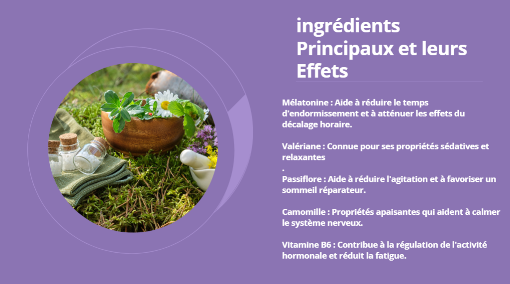 Réduction du Temps d'Endormissement : La Mélatonine, ingrédient clé de notre formule, contribue à réduire le temps nécessaire pour s'endormir, vous permettant de trouver le sommeil plus rapidement et sans agitation.
